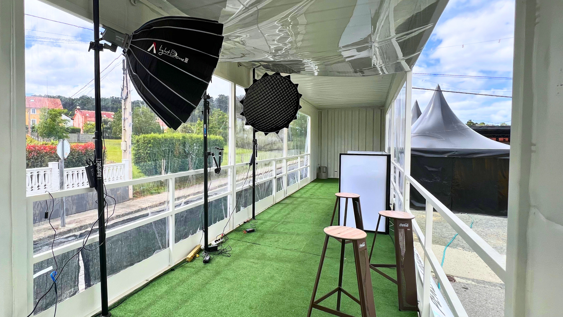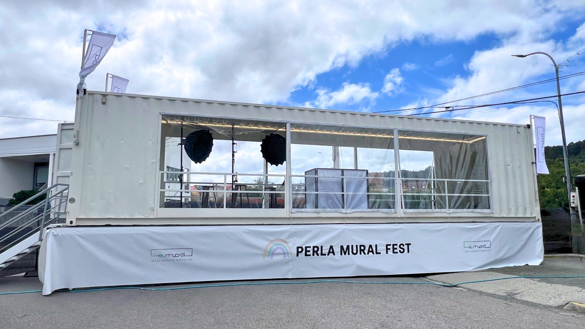 Este año, nuestra contribución fue tangible y práctica: levantamos un espacio modular que sirvió como centro de información y prensa del festival. Una base funcional que facilitó la conexión entre público, artistas y organización, integrándose como un elemento esencial del evento.